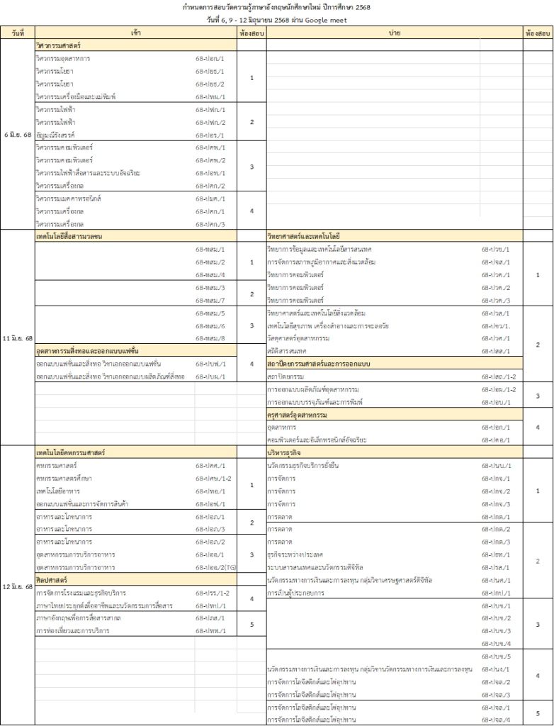 รายละเอียดการสอบวัดความรู้ภาษาอังกฤษนักศึกษาใหม่ ปีการศึกษา 2568 รอบที่ 1